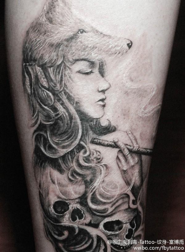 花腿纹身--一组大黑腿纹身图案作品欣赏