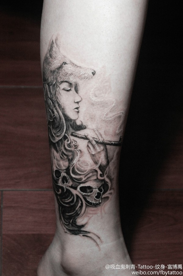 花腿纹身--一组大黑腿纹身图案作品欣赏