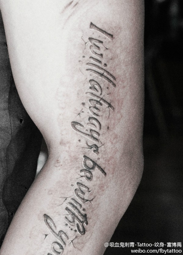 中国有嘻哈TT手臂上花体英文纹身图片