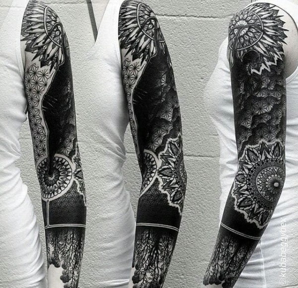 25款男性黑色手臂线条纹身点刺技巧半甲纹身图案