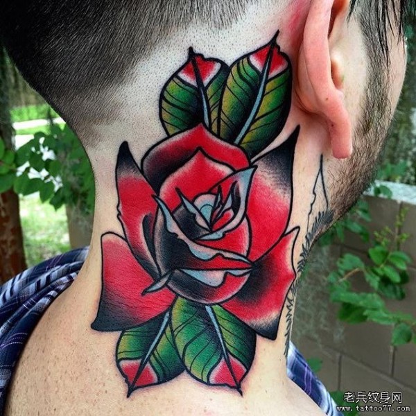 欧美玫瑰纹身 男生手臂上花朵纹身图片