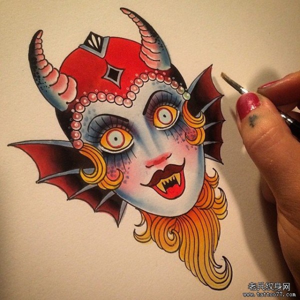 欧美school人鱼怪物头像纹身图案手稿