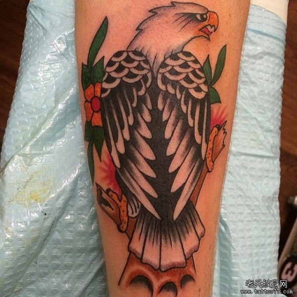小臂欧美old school老鹰纹身图案