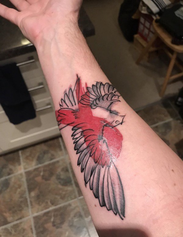 手臂上黑色粗线条纹身动物鸟纹身图片