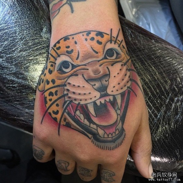 手背欧美new school豹子头纹身图案