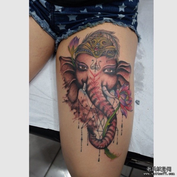 小腿上一款大象纹身图案_腿部纹身图案大全_纹身图吧