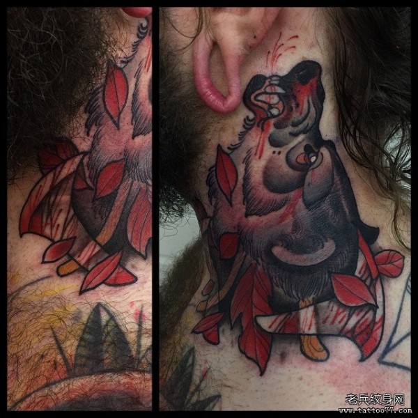 颈部欧美school狼头纹身图案