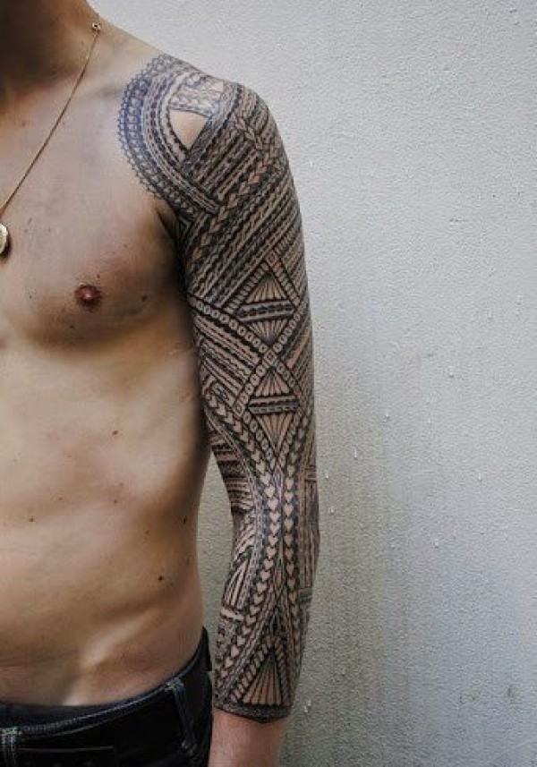 男性超帅气的花臂部落图腾纹身图案