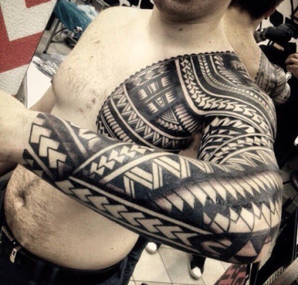 男性超帅气的花臂部落图腾纹身图案