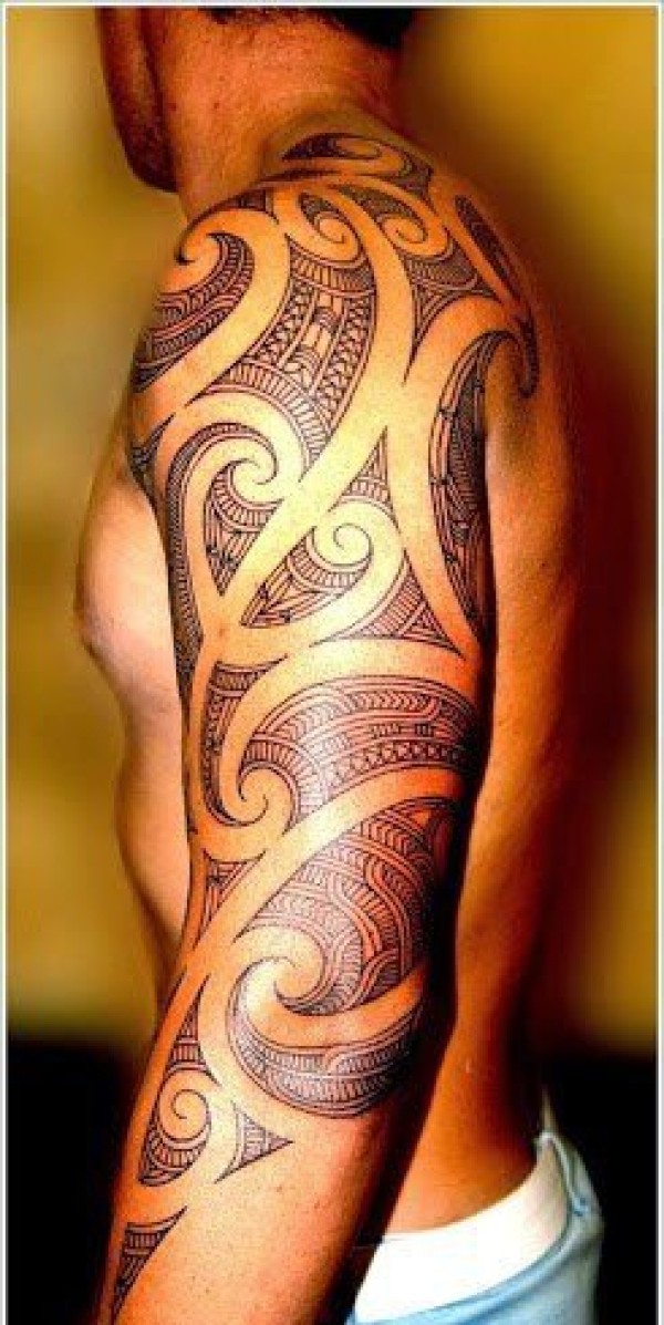男性超帅气的花臂部落图腾纹身图案