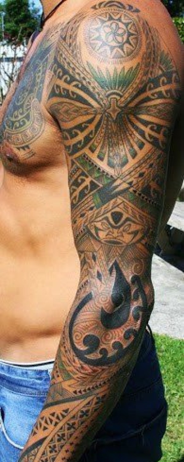 男性超帅气的花臂部落图腾纹身图案