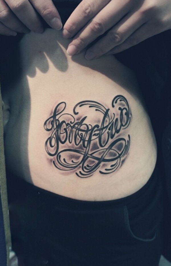 女生腰上好看的花体英文字母刺青图片
