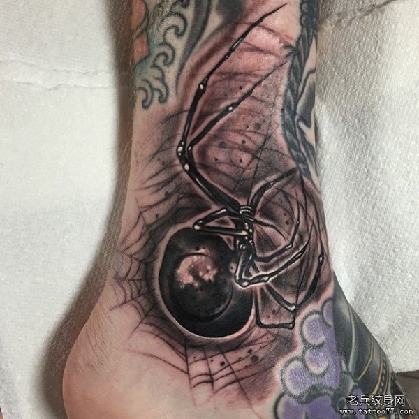 脚踝蜘蛛黑洞纹身图案