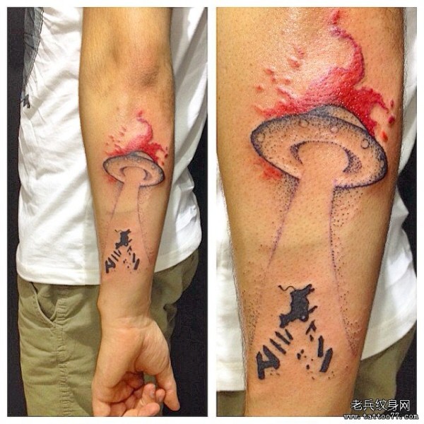 手臂一款彩色蘑菇纹身图案_臂部纹身图案大全_纹身图吧