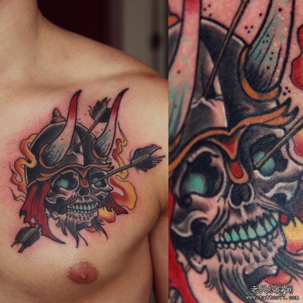 胸部鬼武士欧美school纹身图案