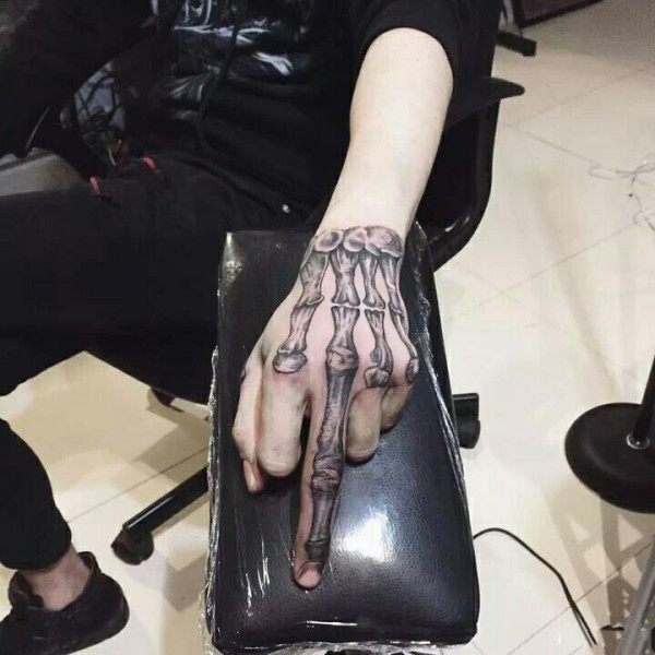 手背个性骨头纹身图案