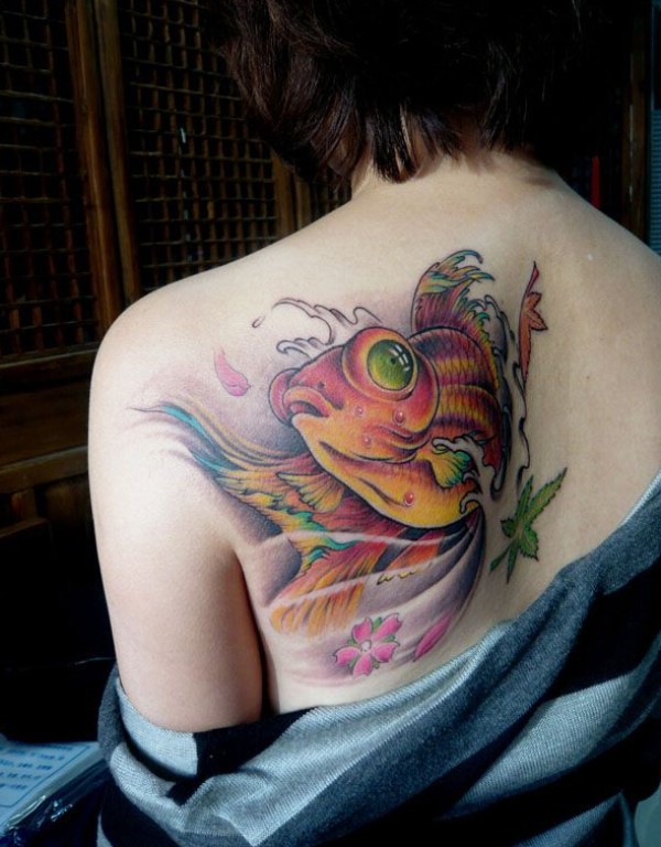 后背漂亮的金鱼纹身图案