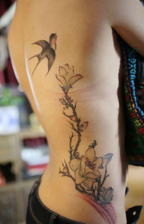 分享一款腰部时尚性感的蝶恋花纹身图案_腰部纹身图案大全_纹身图吧