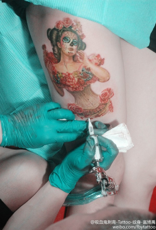 写实风格Dead Girl主题纹身作品.