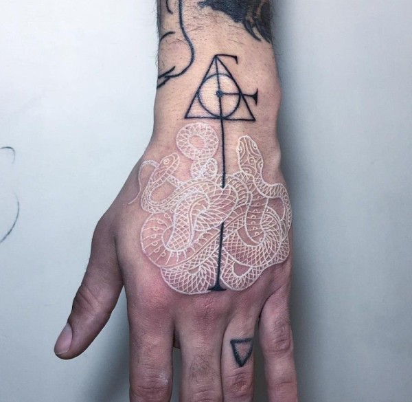黑色和白色手臂眼镜蛇纹身动物几何点刺纹身图案