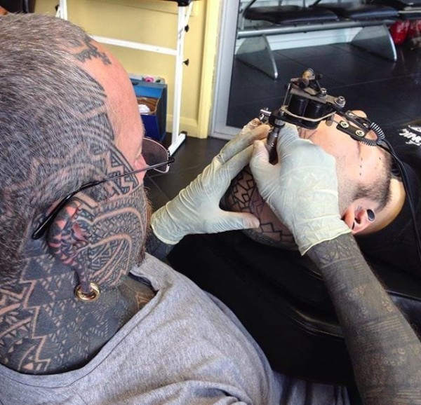 黑色面部个性纹身耳朵上线条几何纹身图案