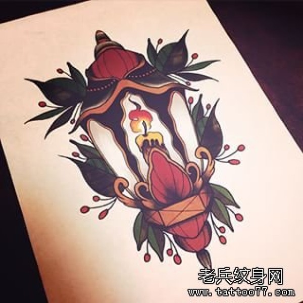 欧美蜡烛灯纹身图案手稿