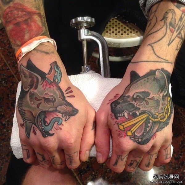 手背欧美狼头豹子纹身图案