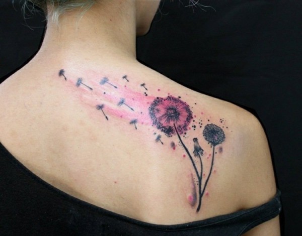 美女超喜爱的水彩泼墨纹身小花朵图案