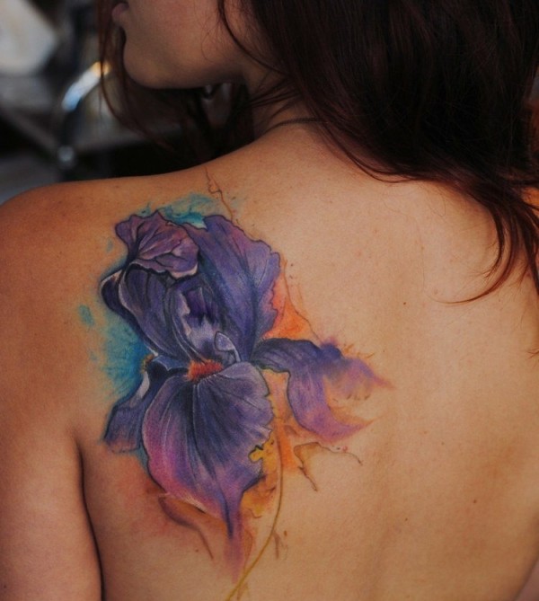 美女超喜爱的水彩泼墨纹身小花朵图案
