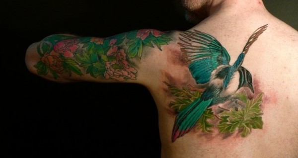 后肩唯美花藤英文图案图片_植物纹身图案大全_纹身图吧