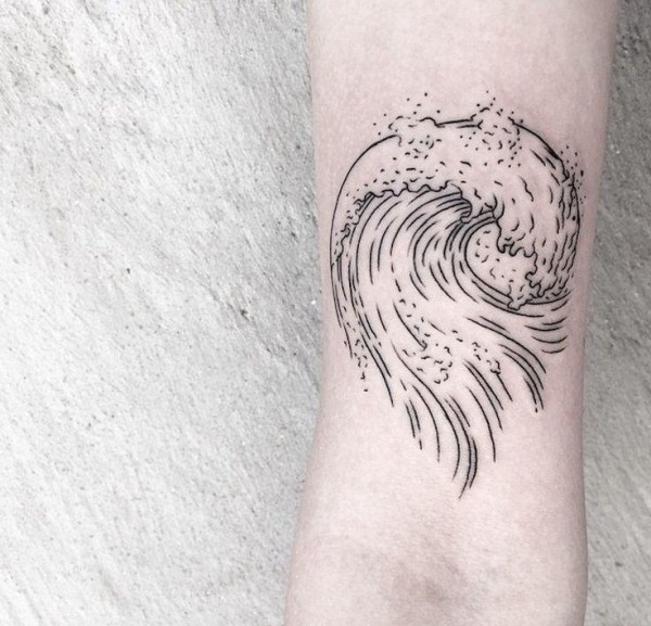 手臂上黑色简单个性线条纹身海浪和浪花纹身图片