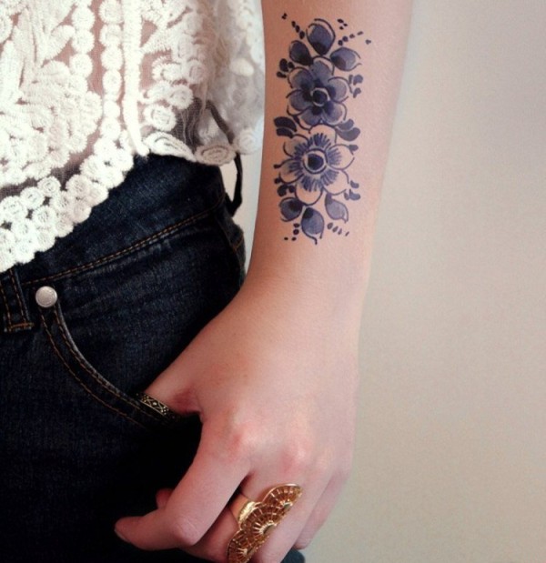 和实物非常相似的手臂花朵纹身图案