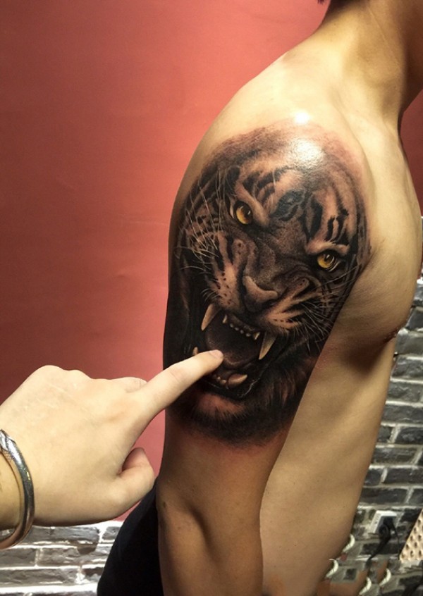 霸气半胛老虎纹身_动物纹身图案大全_纹身图吧