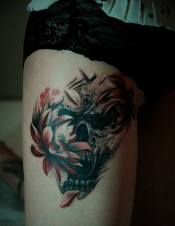 逼真的超现实主义花纹身图案来自纹身师莫拉莱斯