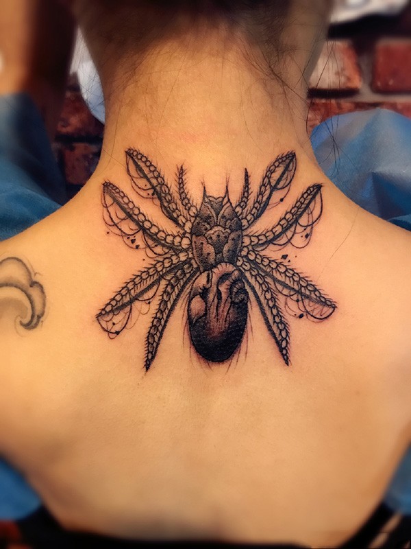 肩甲上的蜘蛛图案纹身_后背纹身图案大全_纹身图吧