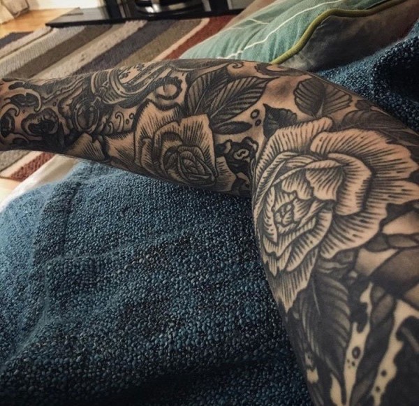 22款黑灰色的欧美满臂纹身时尚花臂纹身图案