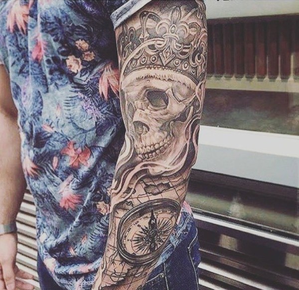 22款黑灰色的欧美满臂纹身时尚花臂纹身图案