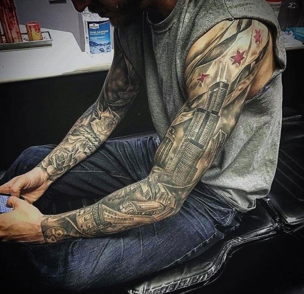 22款黑灰色的欧美满臂纹身时尚花臂纹身图案