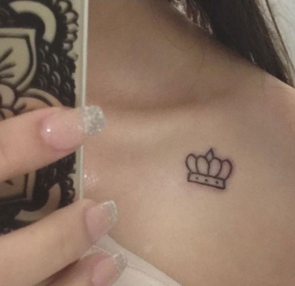 31款黑色简单个性线条纹身小清新女生纹身皇冠图案