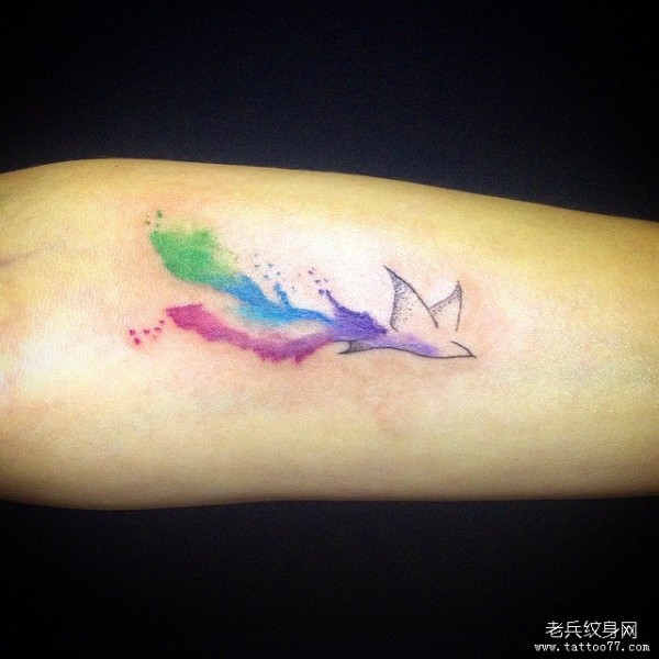 小臂泼墨小清新小鸟纹身图案