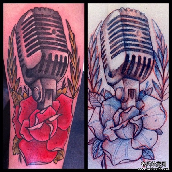 欧美school话筒玫瑰纹身图案