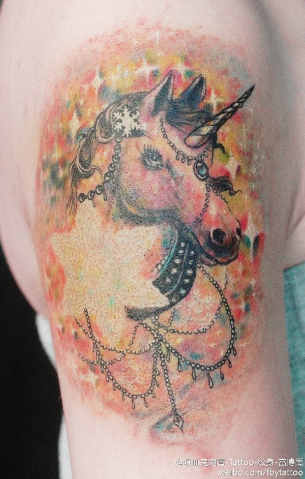 独角兽.即兴发挥创作梦幻色彩.一共有4朵白色的雪花