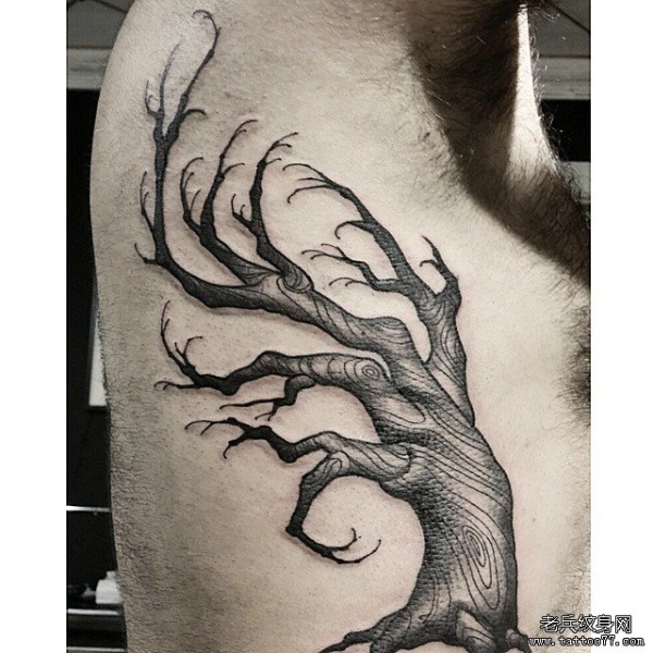 侧腰欧美暗黑系树木纹身图案