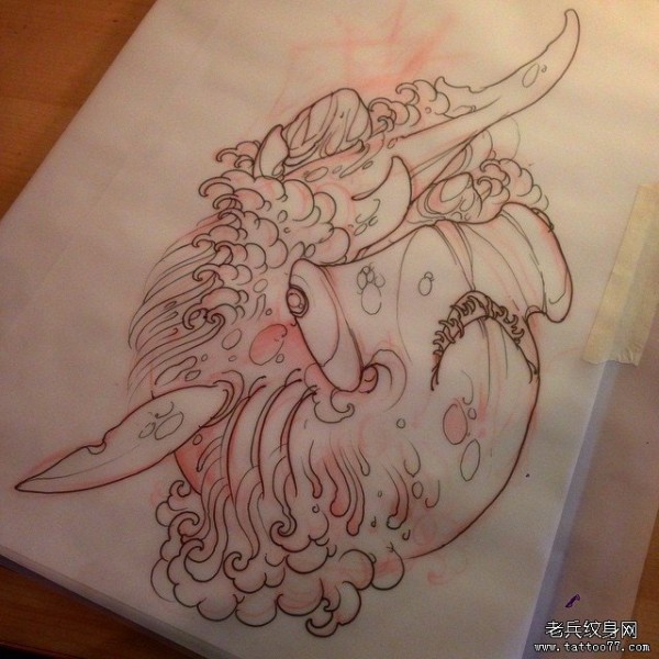 龙纹身手稿_一组老传统黑灰龙手稿纹身图案