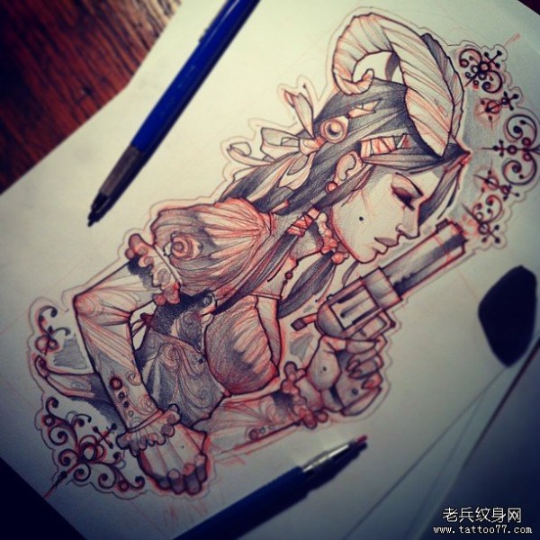 双子座纹身手稿_29张十二星座之双子座纹身图案手稿