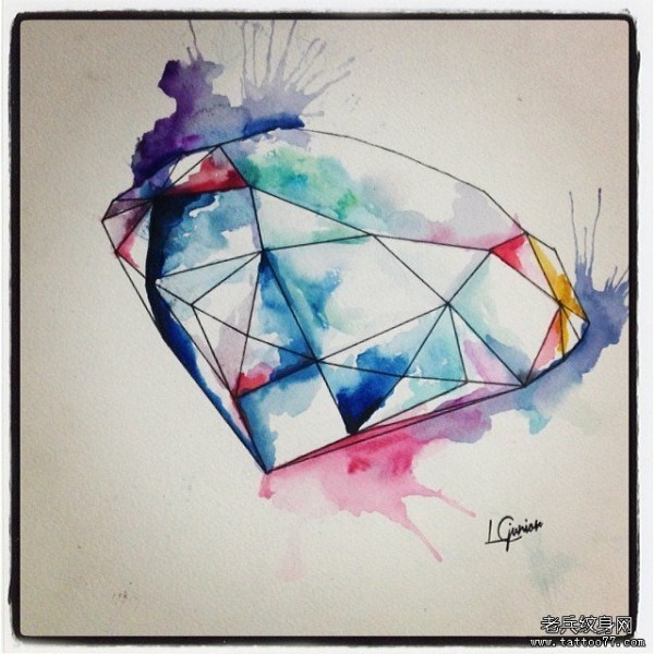 欧美泼墨彩绘几何钻石纹身图案手稿