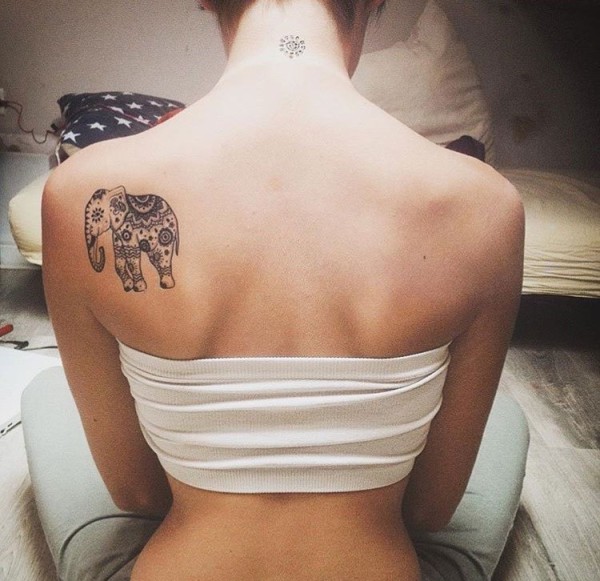 31款女神纹身小清新风格可爱的大象纹身动物图案