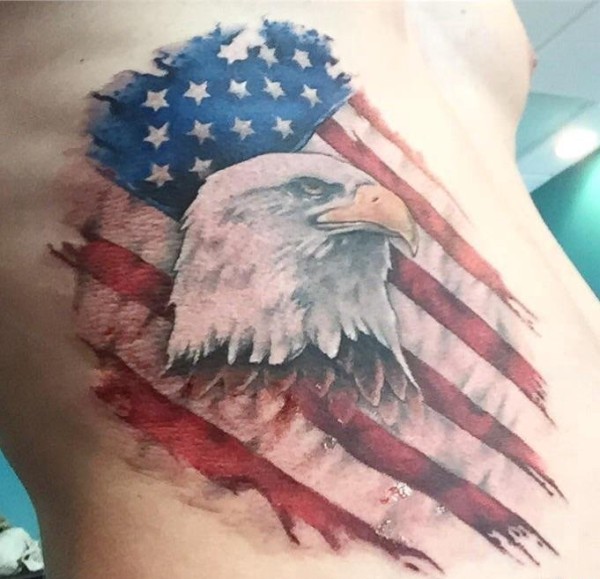 彩色老鹰纹身和美国国旗纹身腰部男性超威猛纹身图片