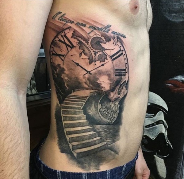 黑灰色骷髅头纹身腰部男性超霸气纹身图案