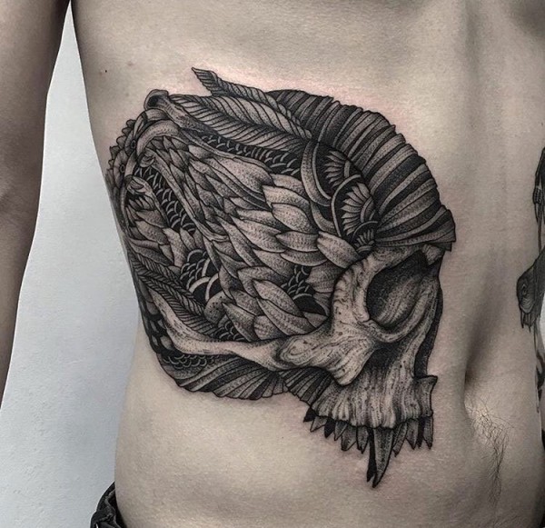 黑灰色骷髅头纹身腰部男性超霸气纹身图案